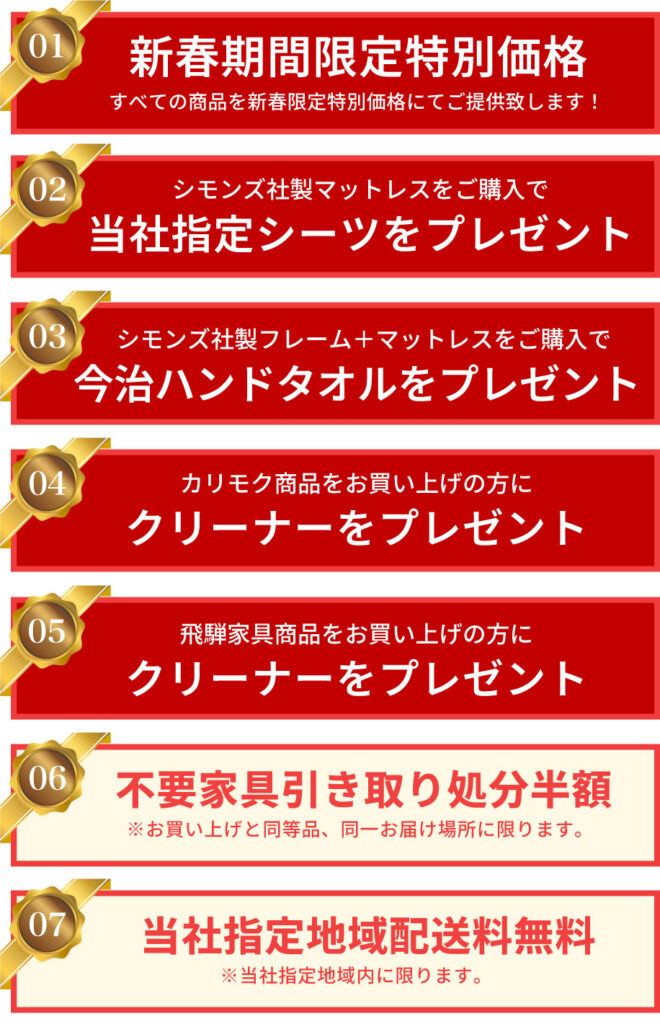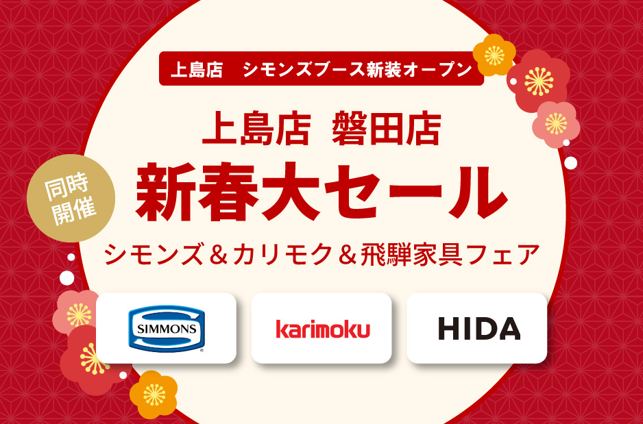 【新春大セール!】 シモンズ&カリモク&飛騨家具フェアを同時開催